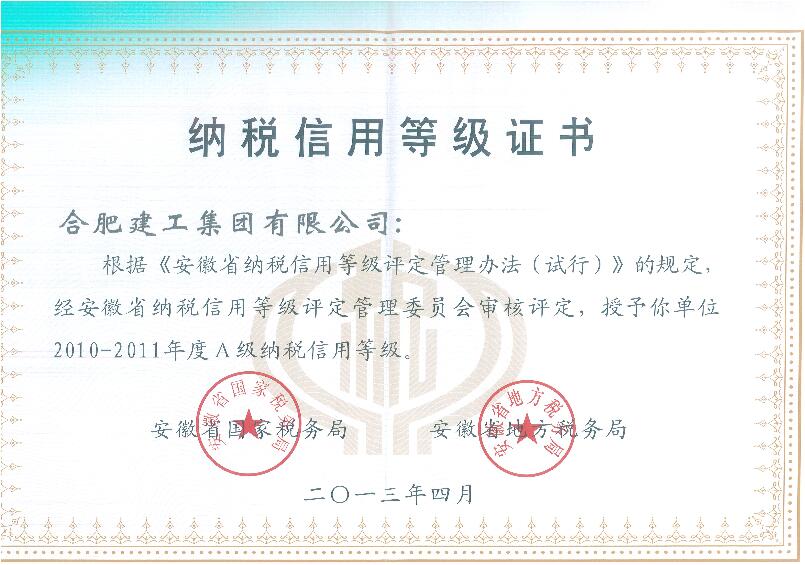 納稅信用等級證書
