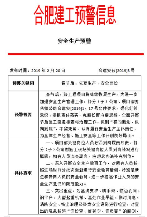合肥建工預(yù)警信息——安全生產(chǎn)預(yù)警