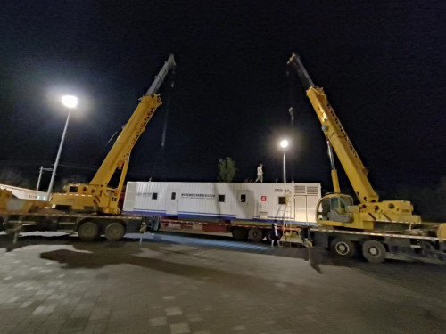 8月21日當天,懷寧周邊地市的醫(yī)療支援隊陸續(xù)開駐懷寧縣體育館,多個移動核酸檢測倉急需卸下開展工作,合肥建工抗疫志愿者小隊接到通知后,立即抽調施工現(xiàn)場的2臺汽車起重機奔赴懷寧縣體育館,負責移動核酸檢測倉的吊卸行動,起重機開足馬力,志愿者爭分奪秒,經(jīng)過7個小時連續(xù)奮戰(zhàn),最終于次日凌晨3點順利完成任務。