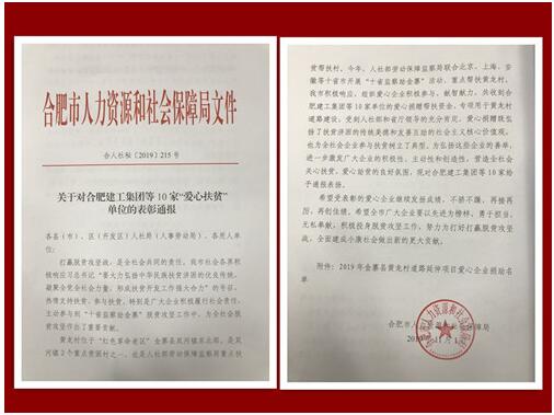 會議還對今年在脫貧攻堅領域做出優異成績的包括合肥建工在內的10家優秀企業進行了通報表彰。