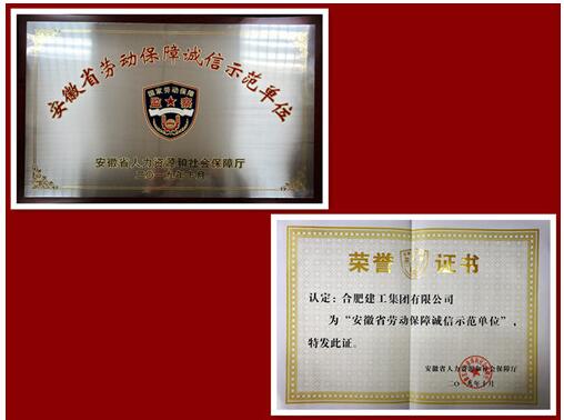 合肥建工榮獲安徽省勞動保障誠信示范單位稱號