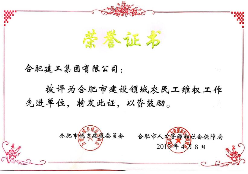 2014年度建設領域農民工維權工作先進單位